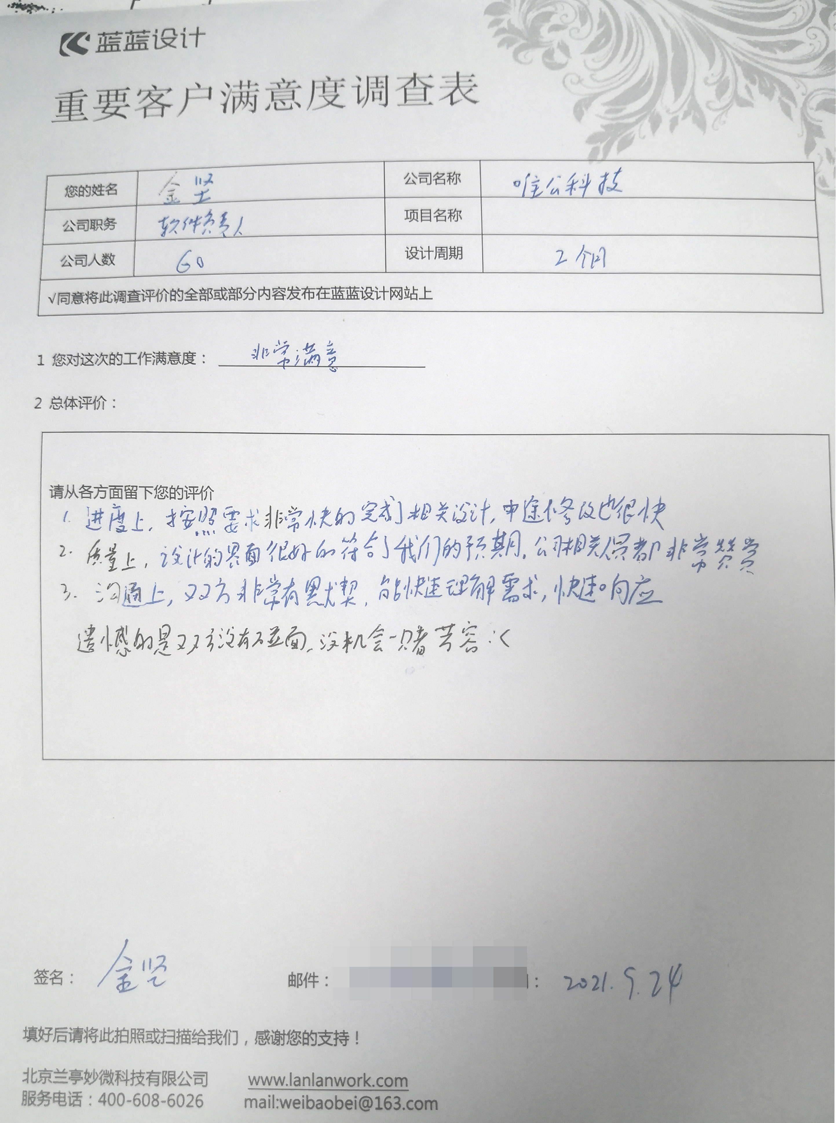 設(shè)計前期,藍(lán)藍(lán)設(shè)計通過問卷調(diào)查方式確定客戶風(fēng)格和喜好,并和客戶溝通頁面交互邏輯和優(yōu)化方法,確定交互方式后,再進(jìn)入視覺設(shè)計階段,這樣可以快速確定設(shè)計方向,節(jié)省大量時間。