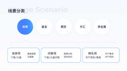 不同場(chǎng)景下用戶需求不同,設(shè)計(jì)解決方案會(huì)有差異,金融品類(lèi)需求豐富包括股票/基金/期貨/外匯/貴金屬,需求類(lèi)型包括實(shí)體需求/問(wèn)答需求/轉(zhuǎn)化需求,需通過(guò)數(shù)據(jù)分析了解各類(lèi)需求占比,可以作為后續(xù)優(yōu)化優(yōu)先級(jí)的判斷指標(biāo),經(jīng)過(guò)數(shù)據(jù)分析后得出結(jié)論股票品類(lèi)需求及用戶占比遠(yuǎn)高于其他品類(lèi),以股票品類(lèi)舉例細(xì)化用戶需求,列舉搜索詞,便于后續(xù)進(jìn)行線上問(wèn)題走查挖掘設(shè)計(jì)機(jī)會(huì)點(diǎn)。