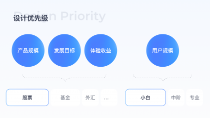 由于開(kāi)發(fā)資源有限,不能一次做完所有產(chǎn)品設(shè)計(jì)優(yōu)化,因此需針對(duì)優(yōu)化內(nèi)容排布優(yōu)先級(jí),對(duì)高優(yōu)場(chǎng)景進(jìn)行優(yōu)化,這里的方法是結(jié)合用戶分類(lèi)規(guī)模、產(chǎn)品品類(lèi)規(guī)模、發(fā)展目標(biāo)、體驗(yàn)收益高低明確優(yōu)化優(yōu)先級(jí),通過(guò)上述精細(xì)化分析得出結(jié)論股票場(chǎng)景用戶規(guī)模大,且小白用戶占比高,因此在股票場(chǎng)景下針對(duì)偏小白用戶高優(yōu)進(jìn)行設(shè)計(jì)優(yōu)化。