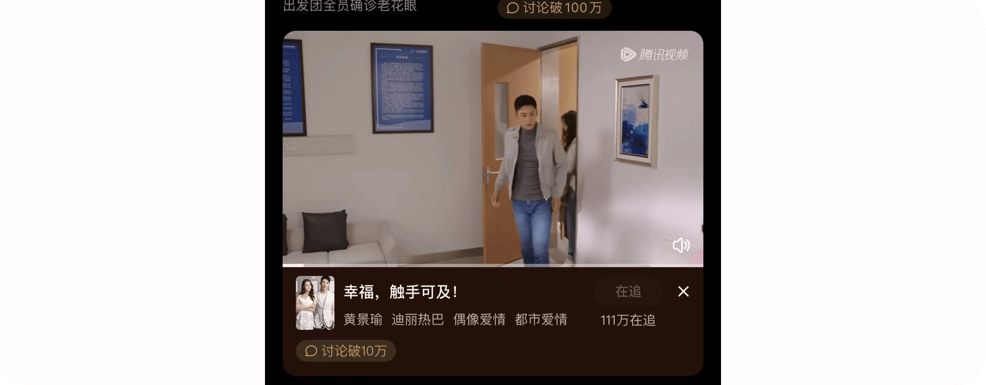 2.2.3產(chǎn)品亮點(diǎn):視頻大卡片推薦這種樣式的推薦形式雖然同屏下相比雙瀑布流的可推薦內(nèi)容少,但可以讓用戶更注重內(nèi)容視頻本身,推薦的視頻內(nèi)容都為該作品的熱門片段,小編經(jīng)??粗粗桶怖艘粋€(gè)新劇,很適合作為長視頻推薦列表使用