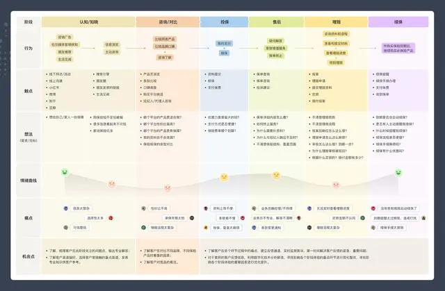 用戶(hù)旅程圖的應(yīng)用廣泛,不僅可以幫助我們進(jìn)行流程分析,還可以識(shí)別痛點(diǎn),定義問(wèn)題域。同時(shí),它也可以幫助我們進(jìn)行用戶(hù)反饋的收集和整理,為產(chǎn)品或服務(wù)的優(yōu)化提供依據(jù)。