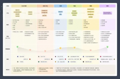 畫(huà)出用戶(hù)旅程圖是我特別喜歡的一個(gè)工作方法,可以與產(chǎn)品、研發(fā)、市場(chǎng)團(tuán)隊(duì)一起共創(chuàng),優(yōu)化產(chǎn)品。