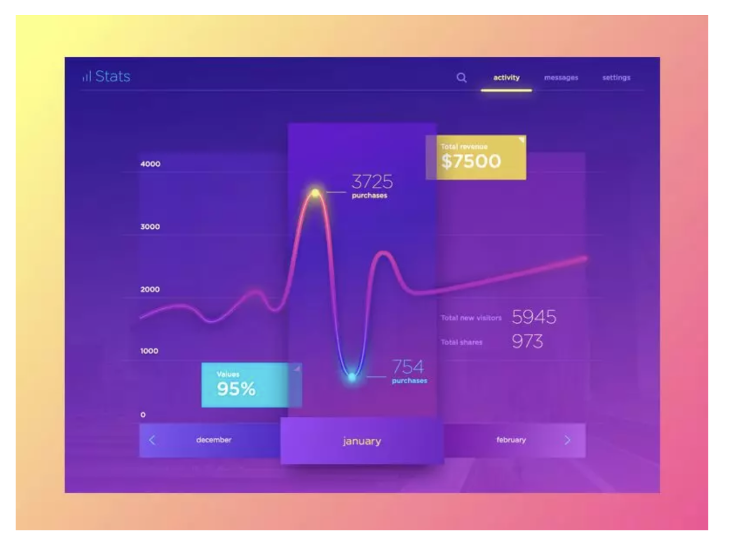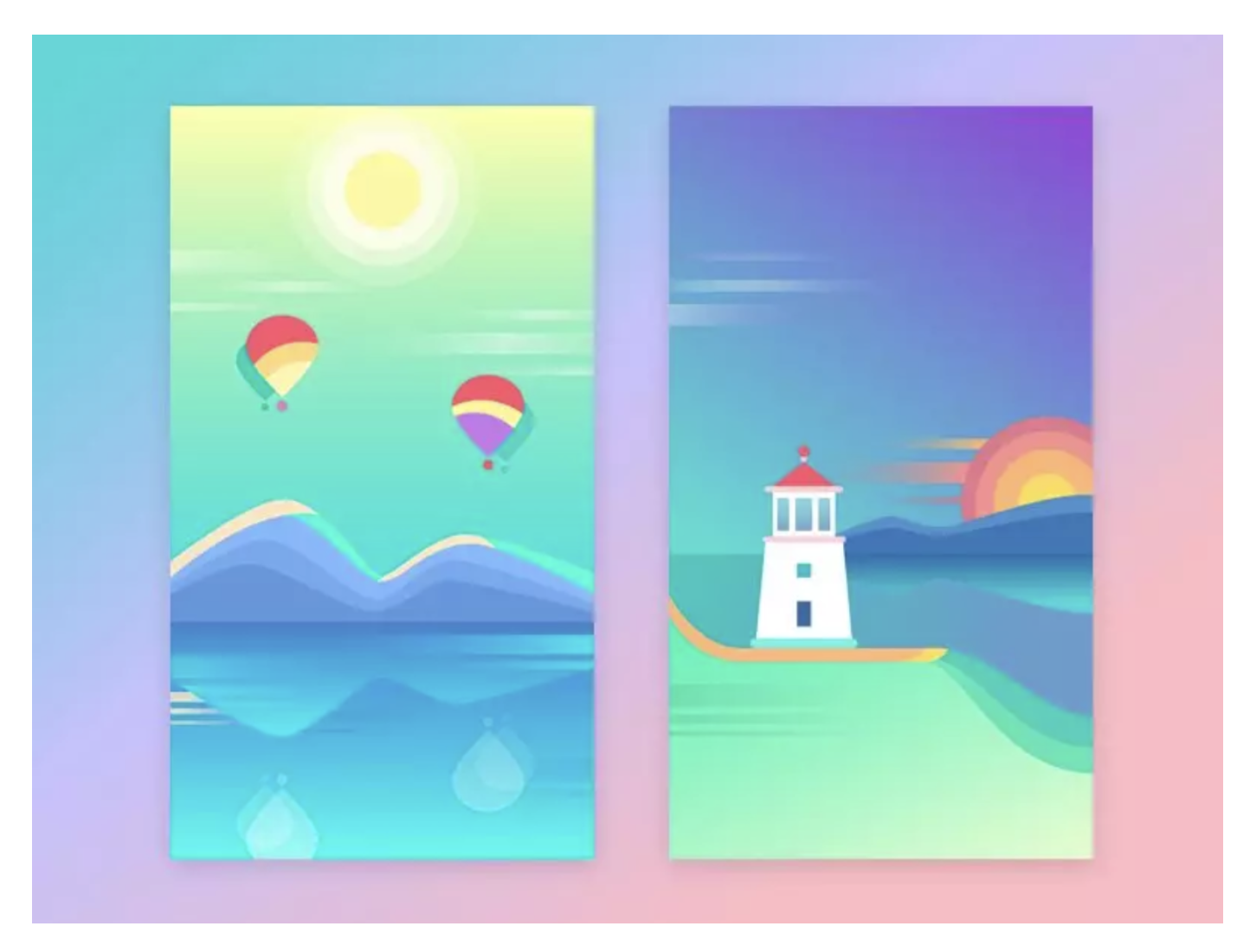 自 2018 年起,漸變成為一種新趨勢,在設(shè)計中更多地應(yīng)用漸變,能夠增強(qiáng)顏色的感染力。不過,很多設(shè)計曾傾向于避免使用漸變色,但現(xiàn)在漸變色的潛力越來越大,在設(shè)計中合理應(yīng)用,反而能為顏色選擇加分。