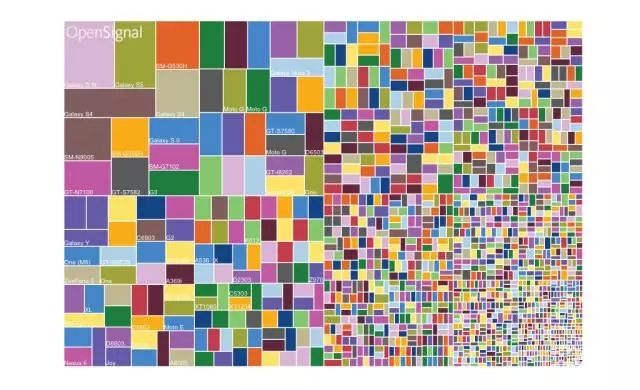 和iPhone不同,有百來個不同的生產(chǎn)商在基于安卓系統(tǒng)研發(fā)他們的手機。舉個例子,OpenSignal.com的網(wǎng)站上有一份乍看美不勝收實則細(xì)思極恐的安卓碎片化信息圖。