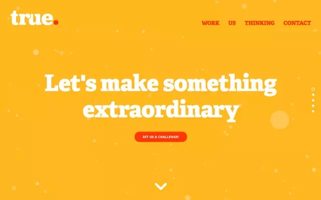 ·單頁設計:為了最大限度地呈現出各種設計效果,這些網站通常會沿用之前的單頁設計,有些網站會加入標準化的導航來引導用戶進入其他的內頁。