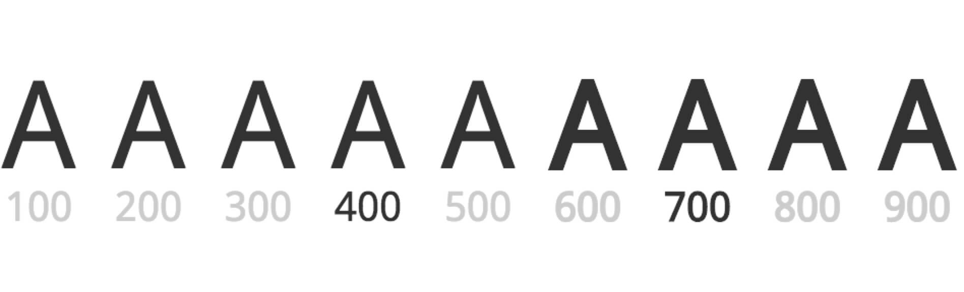 也就是100、200、300、500會(huì)表現(xiàn)為跟400同一種字重,600、800、900會(huì)表現(xiàn)為跟700同一種字重。
