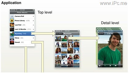 iPhone 典型應(yīng)用的界面結(jié)構(gòu)很穩(wěn)定,導(dǎo)航欄和頁簽欄的位置不會(huì)因?yàn)閼?yīng)用不同而發(fā)生變化,用戶能形成比較一致的體驗(yàn)。