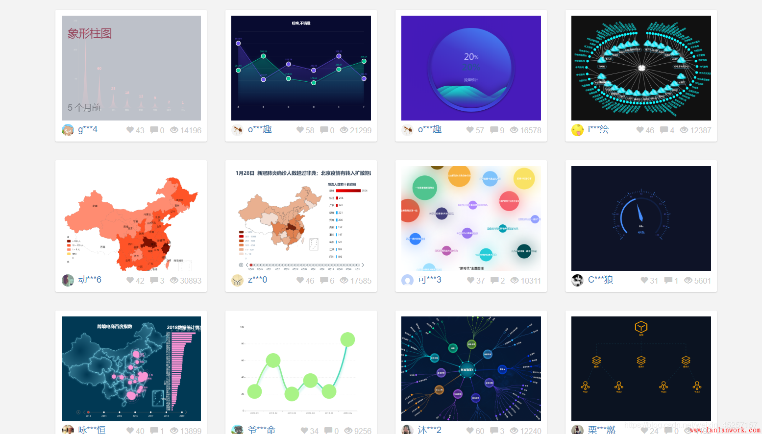 官方自帶的圖例,可能在很多時候并不能滿足我們的需要,在社區(qū)這里可以找到一些基于echart的高度定制好的圖表,相當(dāng)于基于jquery開發(fā)的插件,這里是基于echarts開發(fā)的第三方的圖表。