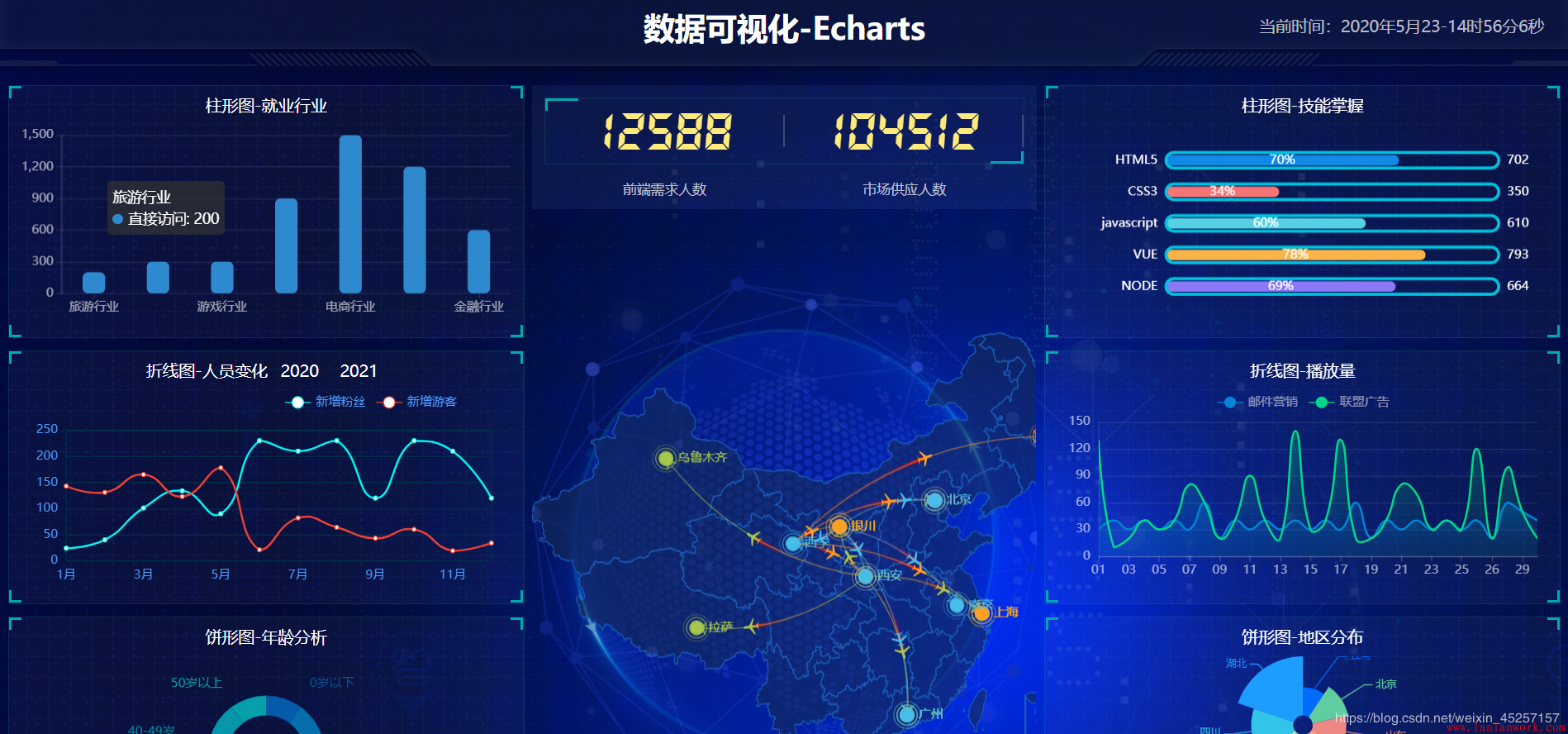 ECharts,一個使用 JavaScript 實(shí)現(xiàn)的開源可視化庫,可以流暢的運(yùn)行在 PC 和移動設(shè)備上,兼容當(dāng)前絕大部分瀏覽器(IE8/9/10/11,Chrome,F(xiàn)irefox,Safari等),底層依賴矢量圖形庫 ZRender,提供直觀,交互豐富,可高度個性化定制的數(shù)據(jù)可視化圖表。