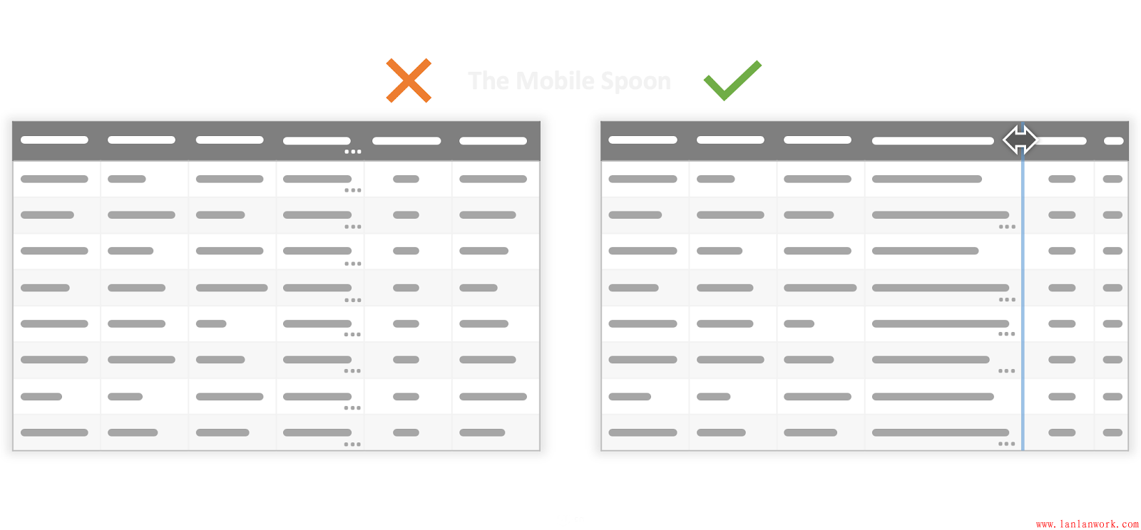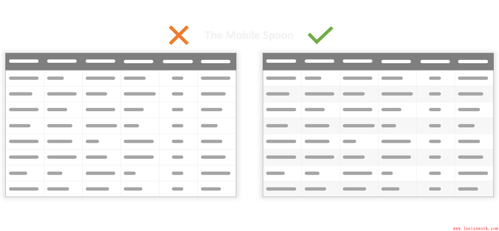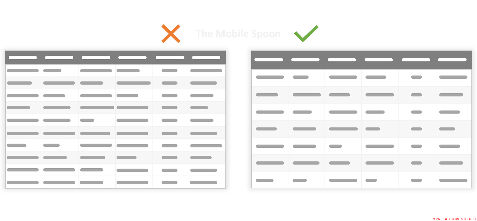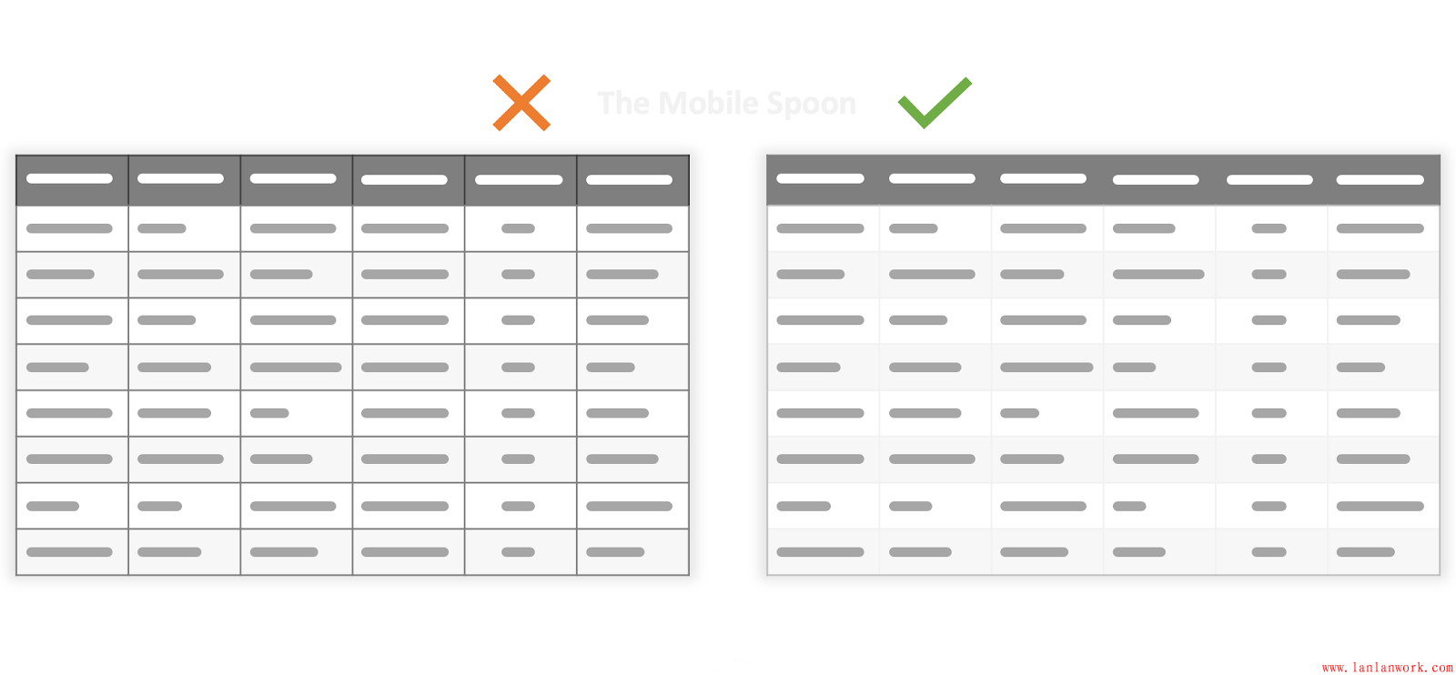 表格和網(wǎng)格是體現(xiàn)結(jié)構(gòu)化信息的,但是,當(dāng)表格的列寬、行高不同時(shí),就會(huì)變得混亂,信息也就會(huì)變得沒有體系。