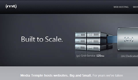 Media Temple 網(wǎng)站的每一個頁面都使用了漸變,不過其漸變使用的節(jié)制和精妙才是設(shè)計成功的關(guān)鍵。logo,大標題,按鈕和背景都有細微的或者鏡像的漸變,以強調(diào)內(nèi)容。最復(fù)雜的漸變用在了那些簡單的120像素寬的按鈕(子頁面中的“ACTIVATE”和“LEARN MORE”)上,因為它們是需要訪客注意的重點。