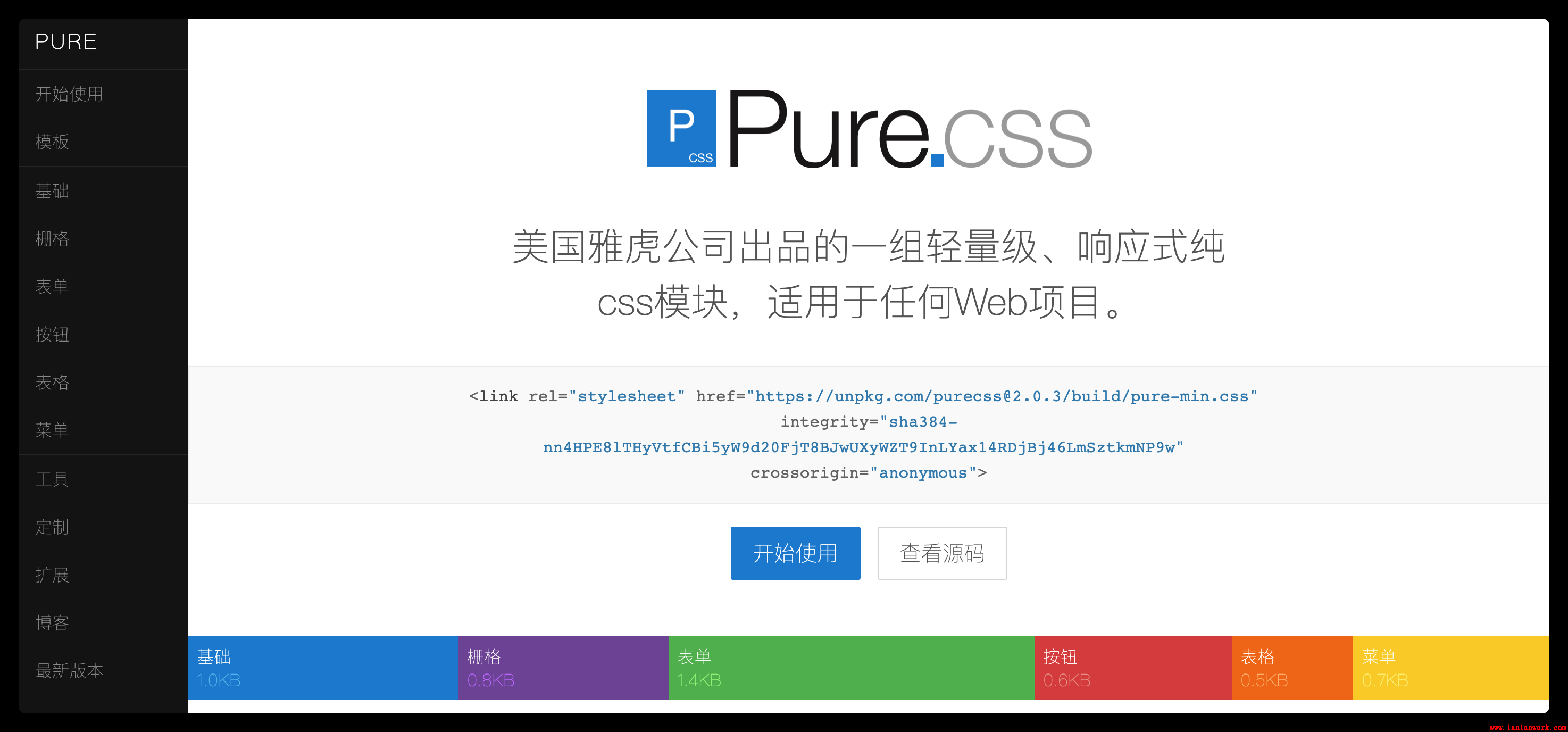 Skeleton 如其名字,非常小巧,設(shè)計簡約,麻雀雖小五臟俱全。網(wǎng)格系統(tǒng),文本,表單,按鈕,列表,表格,媒體查詢等功能面面俱到。非常適合快速創(chuàng)建簡約網(wǎng)站的需求。