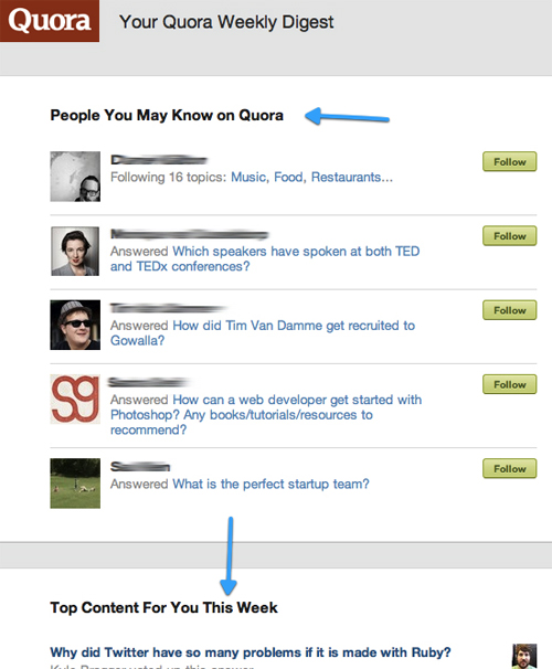 Quora會(huì)在郵件當(dāng)中向用戶推薦他可能感興趣的內(nèi)容。如果你的網(wǎng)站或應(yīng)用有足夠的數(shù)據(jù)來支持這樣的個(gè)性化服務(wù),那么就考慮一下吧。