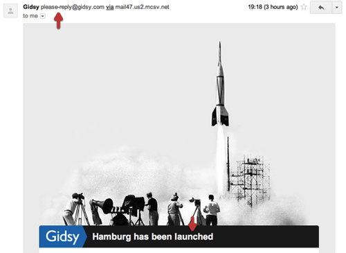 同樣是一幅與其站點(diǎn)風(fēng)格相一致的復(fù)古照片。另外,注意到他們用來發(fā)送郵件的郵箱名稱沒?與常見的做法不同,Gidsy在這里使用了"please-reply",以此向用戶表達(dá)自己樂于傾聽意見的姿態(tài)。