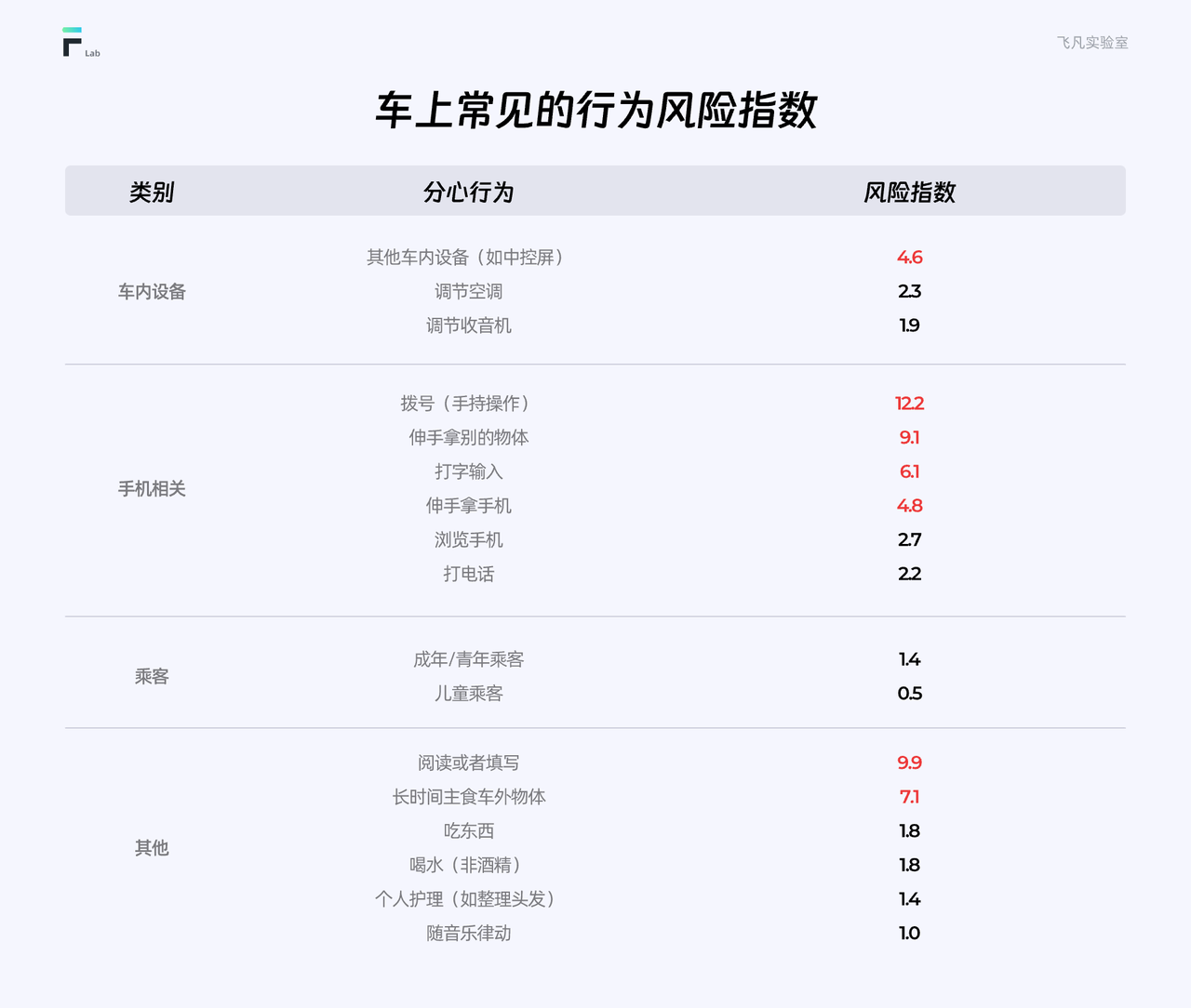 注意力分散程度:行為會(huì)導(dǎo)致駕駛員的注意力從道路上轉(zhuǎn)移出去嗎?如果是的話,分散注意力的程度有多大?