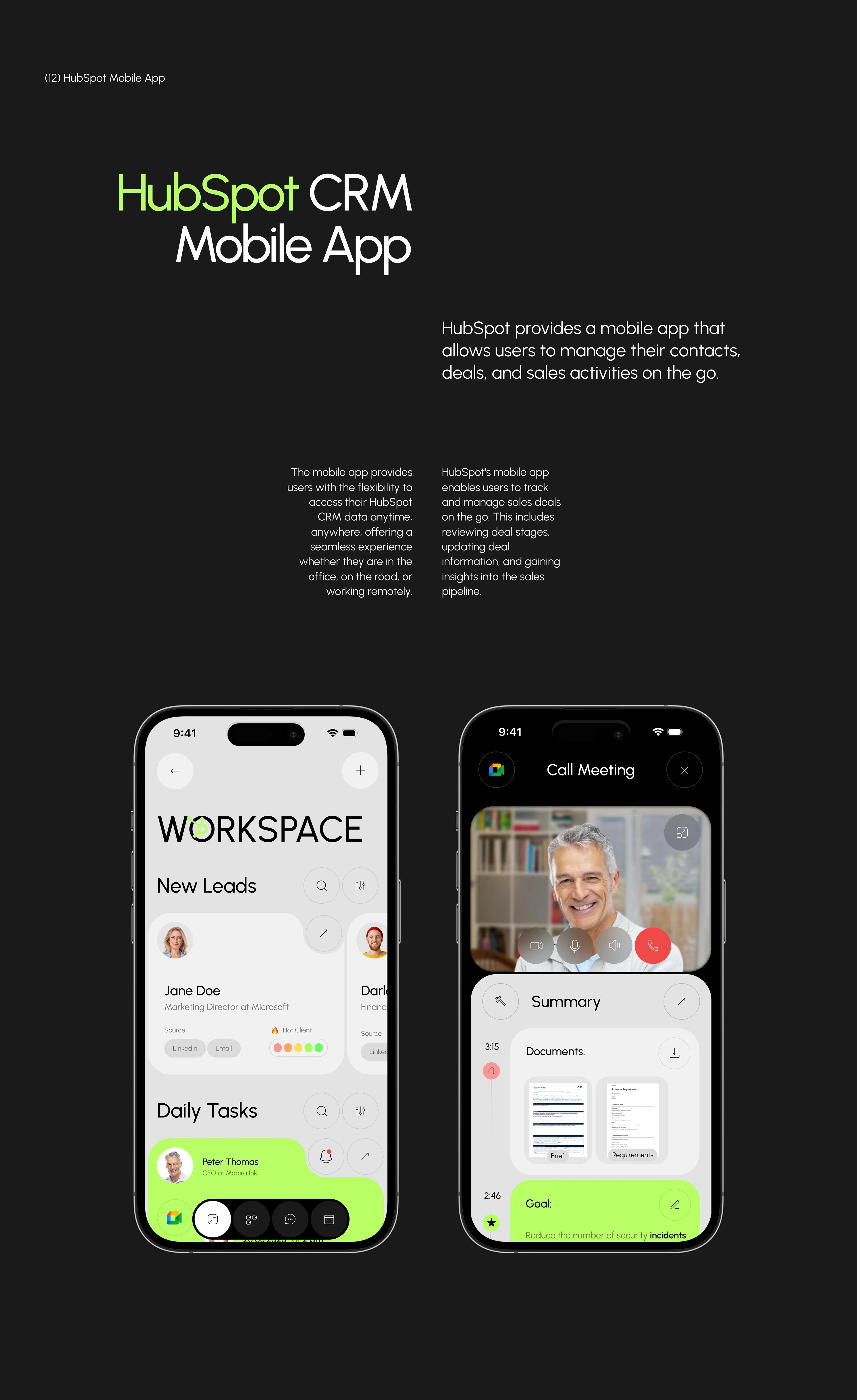 • 界面布局與組件:包含工作區(qū)(WORKSPACE)整體界面呈現(xiàn),以及任務(wù)卡片(如 “Your Day's Tasks” 下的任務(wù))、人物信息卡片(如 “Jane Doe”“Wade Warren” 相關(guān)卡片)、文檔展示模塊(Documents)、目標(biāo)說(shuō)明模塊(Goal)等各類(lèi)界面組件,可用于構(gòu)建類(lèi)似的客戶(hù)關(guān)系管理界面布局。