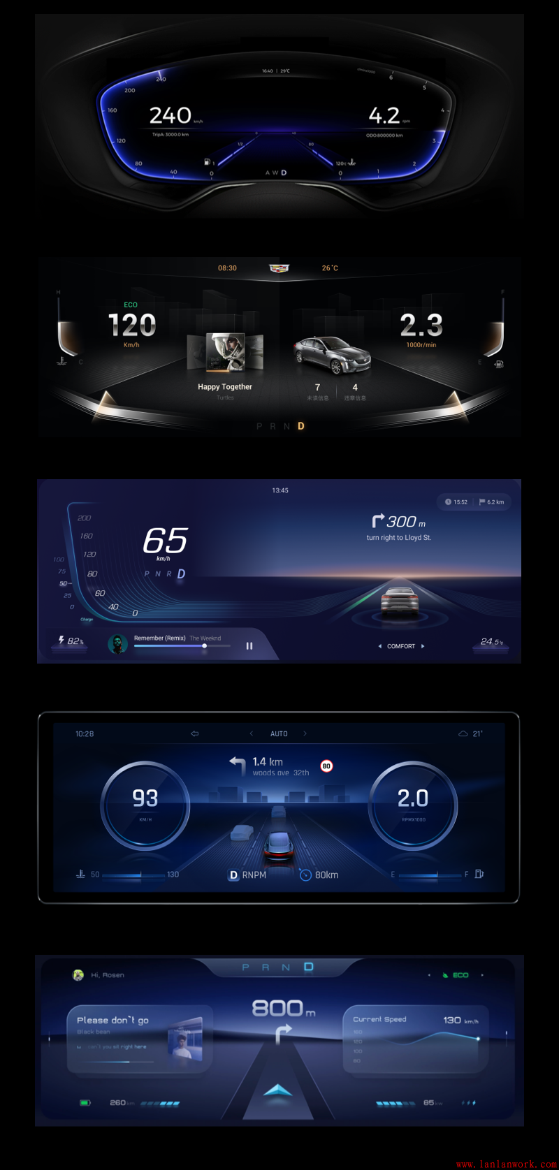 可以看出,作為HMI設(shè)計(jì)師,面對的情況就是越來越大的屏幕尺寸和分辨率以及越來越多屏幕數(shù)量。這也給了設(shè)計(jì)師更多的發(fā)揮空間。交互上可以有更多的交互形式,同時(shí)也有了更高的視覺要求,需要有場景、有主題、有氛圍等等等。作為座艙內(nèi)最顯眼的屏幕,也不簡單是呈現(xiàn)功能那么簡單,它也成為汽車內(nèi)飾的一部分,除了車內(nèi)的氛圍燈,屏幕內(nèi)也需要呈現(xiàn)更多的設(shè)計(jì)美感。