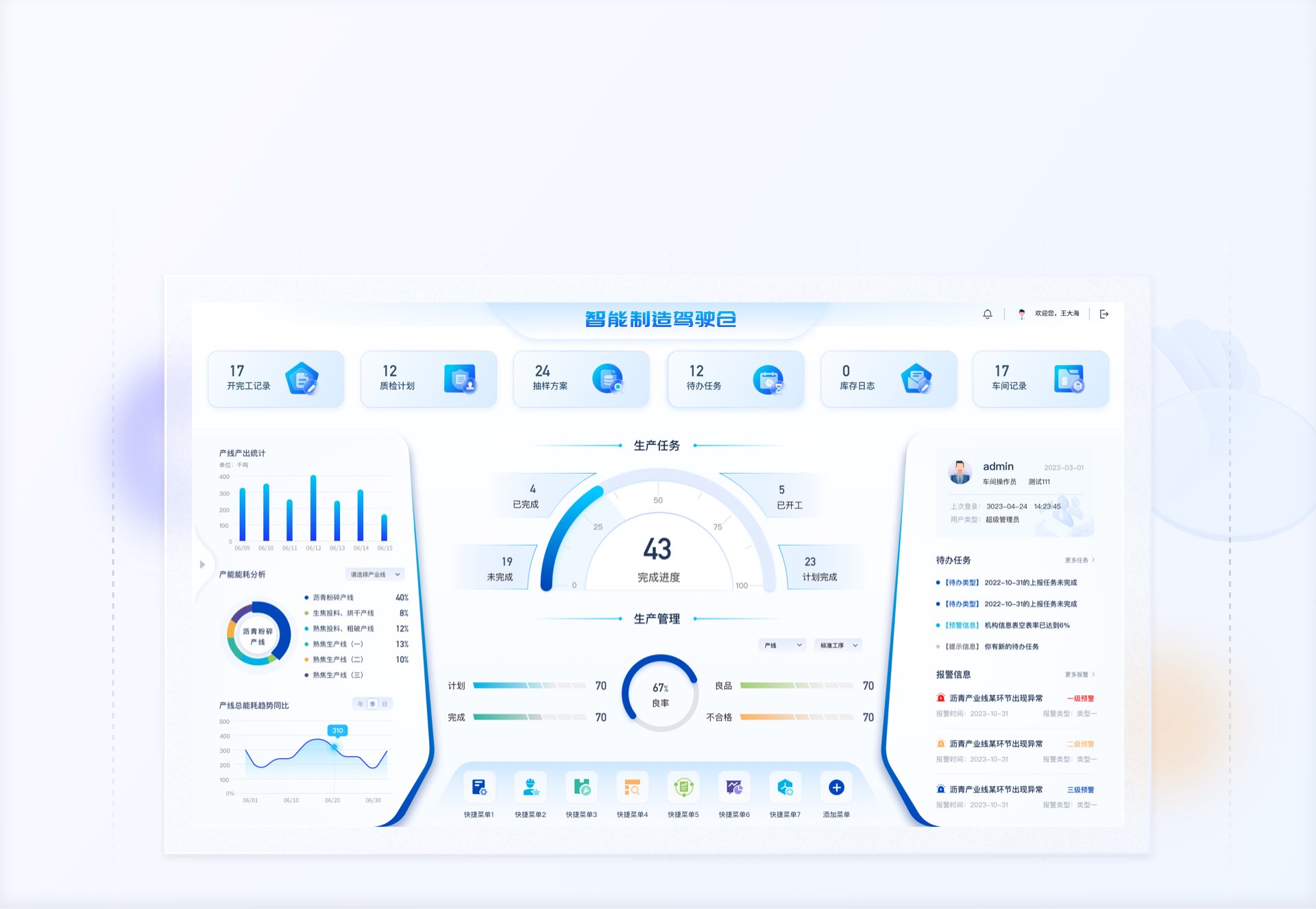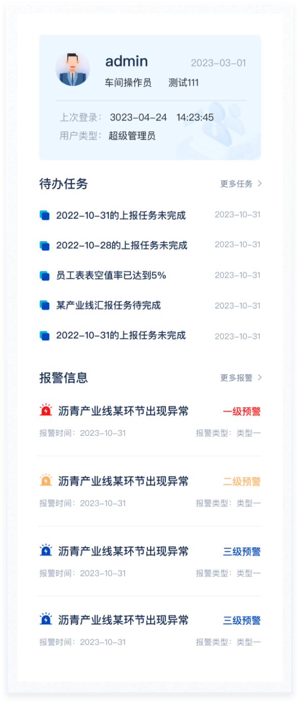 右側(cè)個人信息、待辦事項(xiàng)和報警信息區(qū)