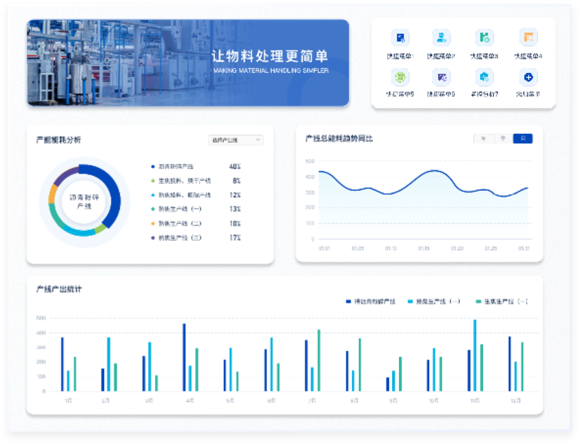 菜單導(dǎo)航區(qū)疊加工廠作業(yè)場景圖,突出軟件的主題同時豐富頁面。
